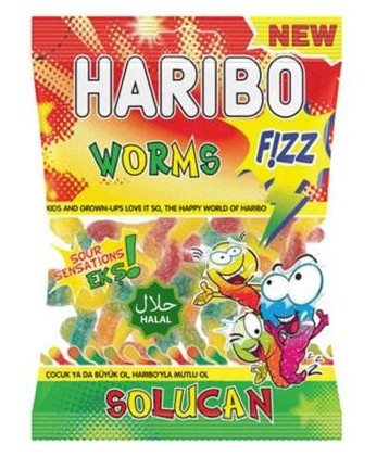 WORMS SOUR HALAL HARIBO 80 GRS. 18U