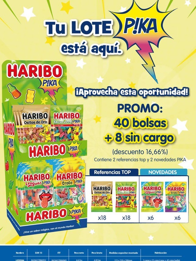 EXPOSITOR HARIBO PIKA 100 GRS. 40+8